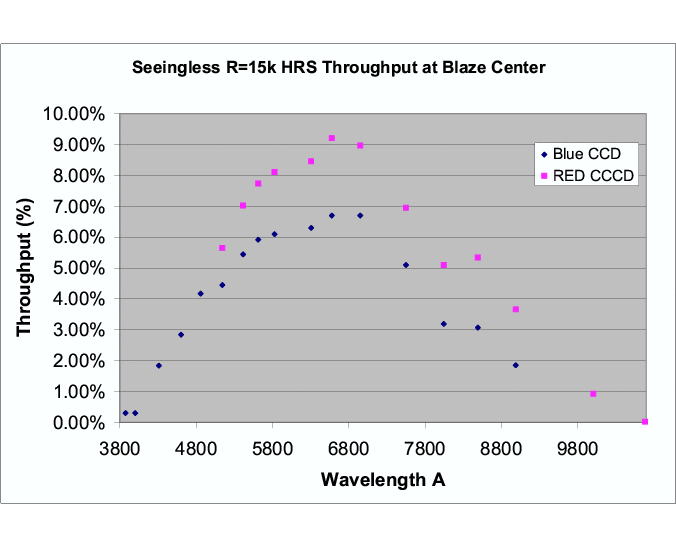 | R=15,000 2" fiber | 13.6 | 1800 | 100 @ 5800 Å |